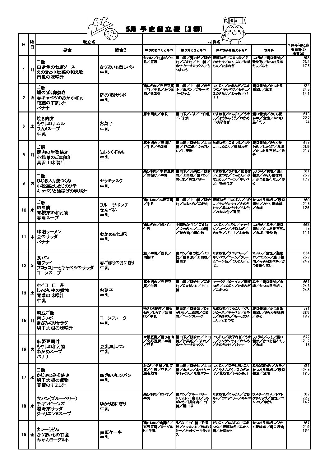 2023年5月 献立表 幼児食