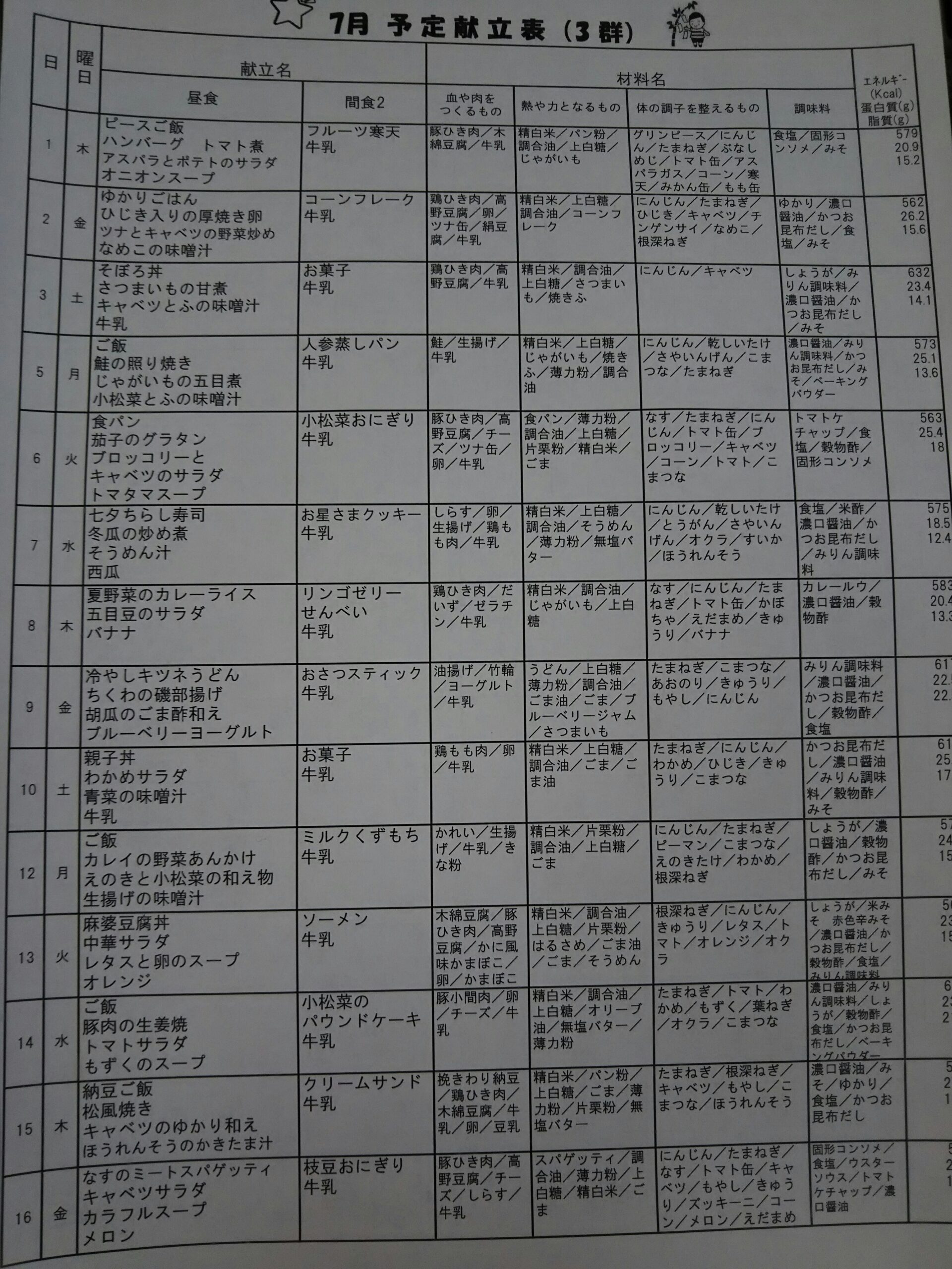 2021年7月 幼児食献立表