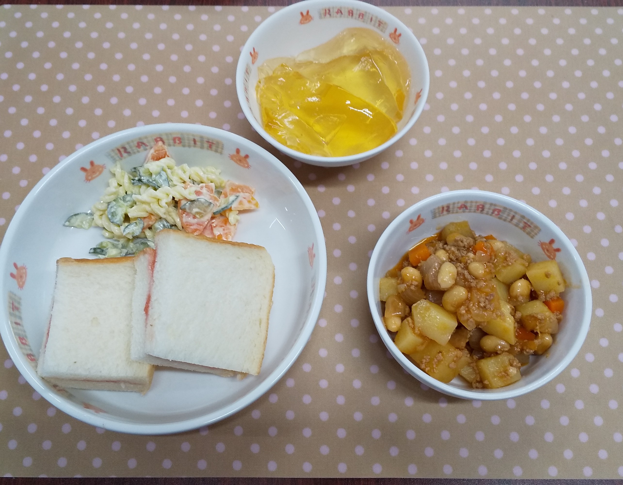 食パン(いちご)0.1ジャムなし・ポークビーンズ・マカロニサラダ・リンゴゼリー